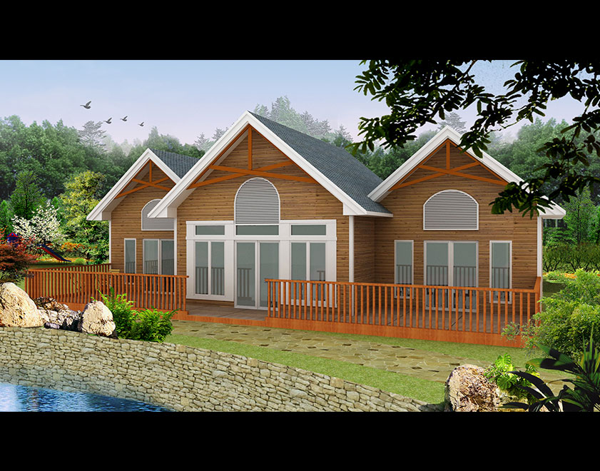 配套建筑部品:整體為輕鋼結(jié)構(gòu),屋面瀝青瓦+卷材防水(材料可選),木塑掛板復(fù)合保溫外墻(材料可選),石膏板內(nèi)墻(材料可選),鋁合金門(mén)窗(材料可選)。