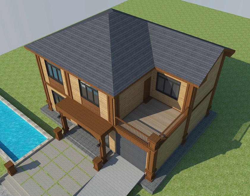 外墻用木塑掛板(材料可選),石膏板內墻(材料可選),鋁合金門窗(材料可選)。