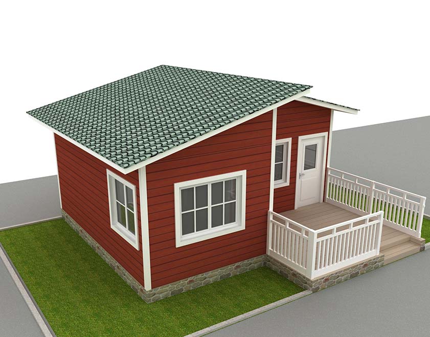 外墻用木塑掛板(材料可選),石膏板內墻(材料可選),鋁合金門窗(材料可選)。