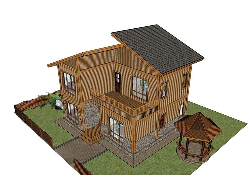 配套建筑部品:整體為輕鋼結(jié)構(gòu),屋面多彩瀝青瓦+卷材防水(材料可選),外墻用水泥纖維掛板再刷涂料(材料可選),石膏板內(nèi)墻(材料可選),鋁合金門窗(材料可選)。